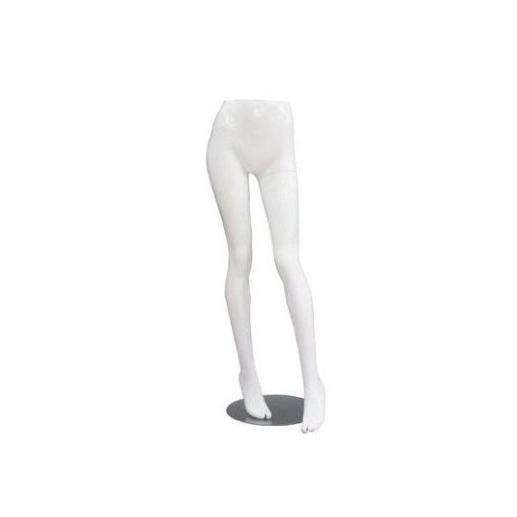 Weiblicher Torso, Beine – schwarz. Metallene Fußplatte. Unterkörper einer Schaufensterpuppe. Hüften.