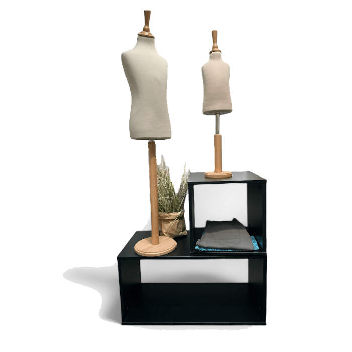 Kube - Podest, Set mit 2 Stk. Die beiden Podeste im Set können zusammen für eine mehrdimensionale Präsentation oder einzeln verwendet werden, je nachdem, ob verschiedene Produkte in unterschiedlichen Höhen und Winkeln präsentiert werden sollen. Wir empfehlen, dass die breitere Kube waagerecht steht. Maße: 40 x 40 x H40 cm. 80 x 40 x H40 cm - wird unmontiert geliefert. Schwarzes Melamin. Der Preis gilt für ein Set Kuben (2 Stk.).