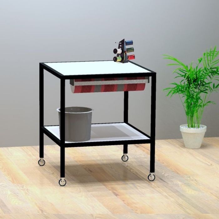 Luton, Packtisch auf Rollen mit weißer Melaminplatte, schwarzem Gestell, 80 x 80 x 80 cm (H). Mit Zubehör.