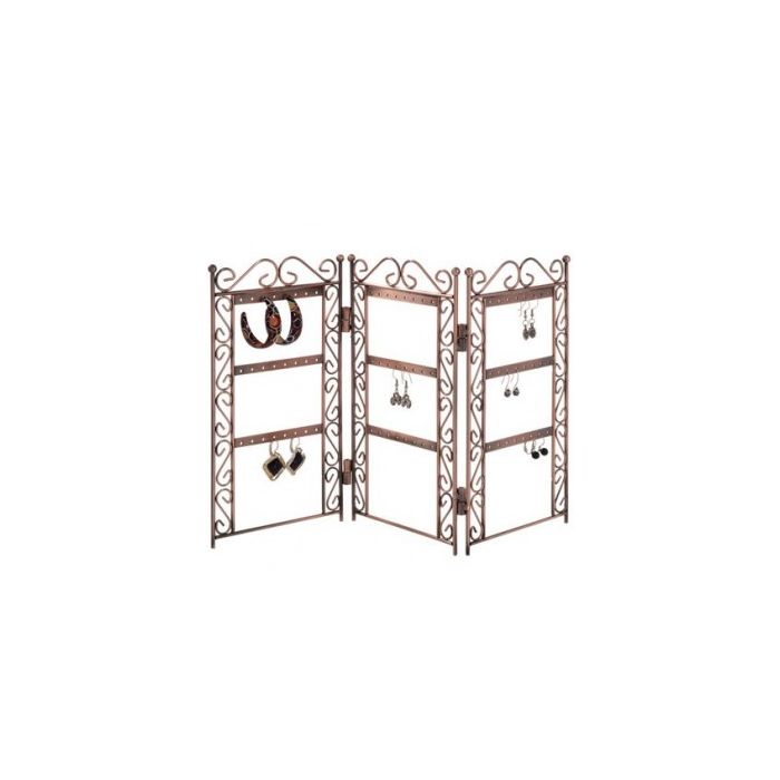 Dieses wunderschöne, kupferfarbene Ohrringdisplay bietet Platz für bis zu 36 Paar Ohrringe. Das dreiflügelige Display eignet sich ideal, um Ihre Ohrringe im Schaufenster oder auf einer Verkaufstheke optimal in Szene zu setzen. Mit einer Breite von 26 cm und einer Höhe von 45 cm ist es elegant und praktisch zugleich und zieht garantiert die Blicke Ihrer Kunden auf sich. Bis zu 36 Ohrstecker. Höhe: 45 cm.