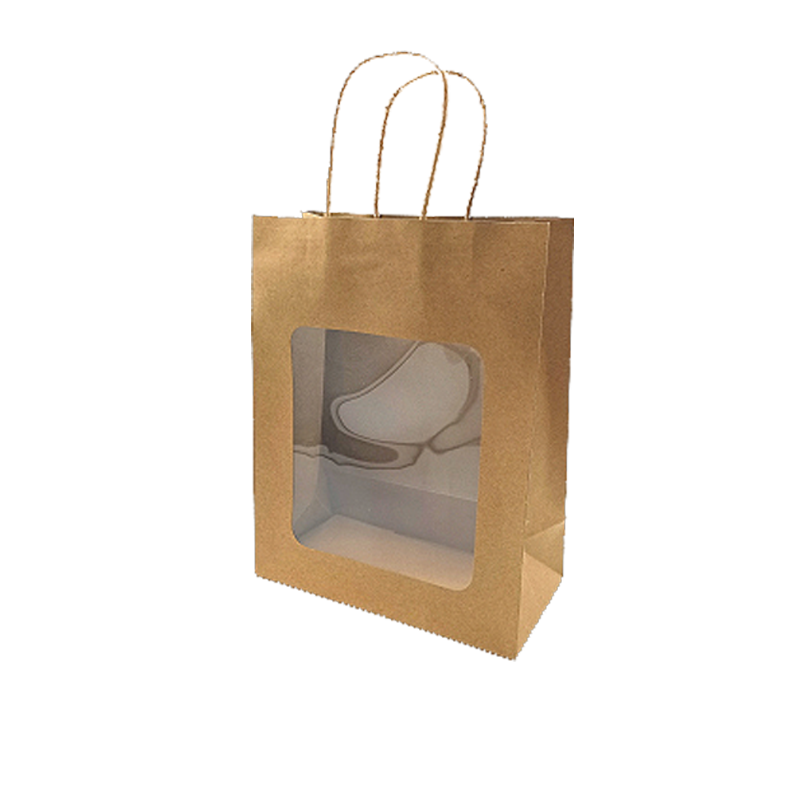 Papiertüte. H 27,5 cm. Mit Fenster. Geschenktüte - natur. 20 Stk.