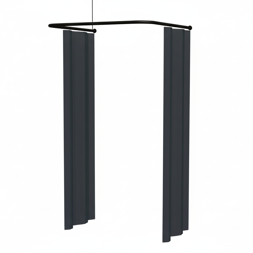 Ankleidekabine, U-Lösung (frei), inkl. schwarzer Vorhang, schwarze Gardinenstange. 100 x 100 x 100 cm, freihängend