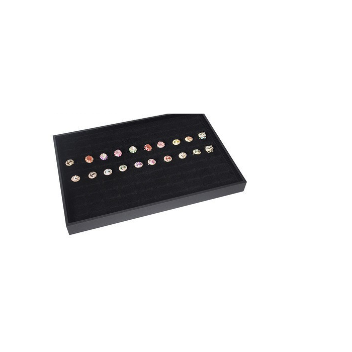 Schmuckablage für Ringe (7 Reihen). Maße: 35 x 24 x 3 cm. Schwarzer Samt.