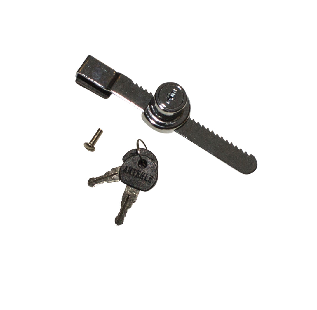 | Deckenverriegelung zum Sichern von Waren in Vitrinen mit Schiebetüren. Passt für Toscana II, Toscana III, Cannes & Classic Vitrinen. Wird mit 2 Schlüsseln geliefert. | Regulärer Preis
