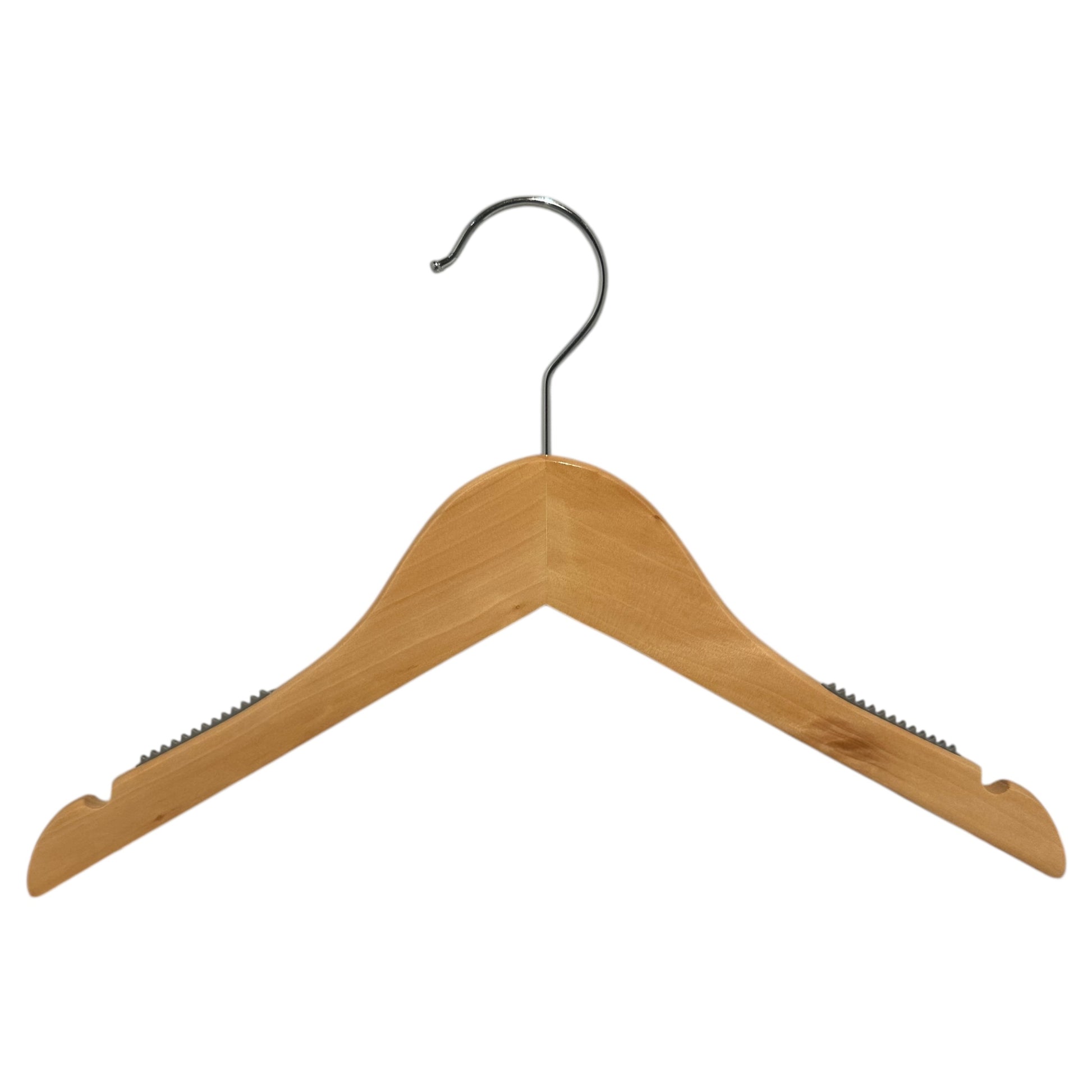 Holzbügel, massiv, flach, Junior, mit Kerbe und ohne Stange, natur, 32 cm