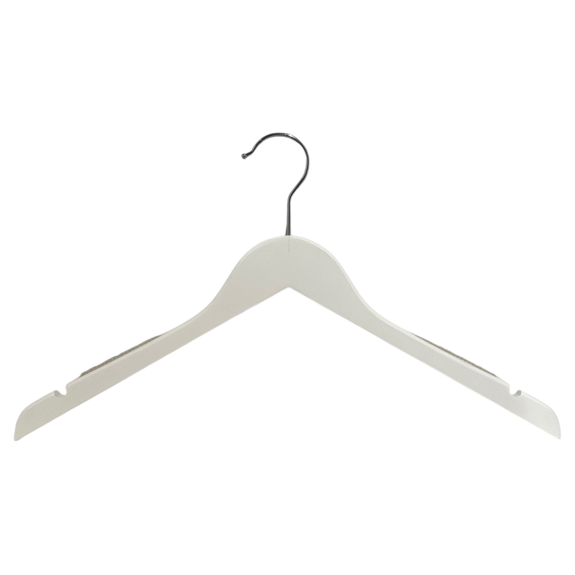 Kleiderbügel aus massivem Holz, flach, für Erwachsene, mit Gummi und Kerbe, ohne Stange, weiß, 12 mm dick, 45 cm